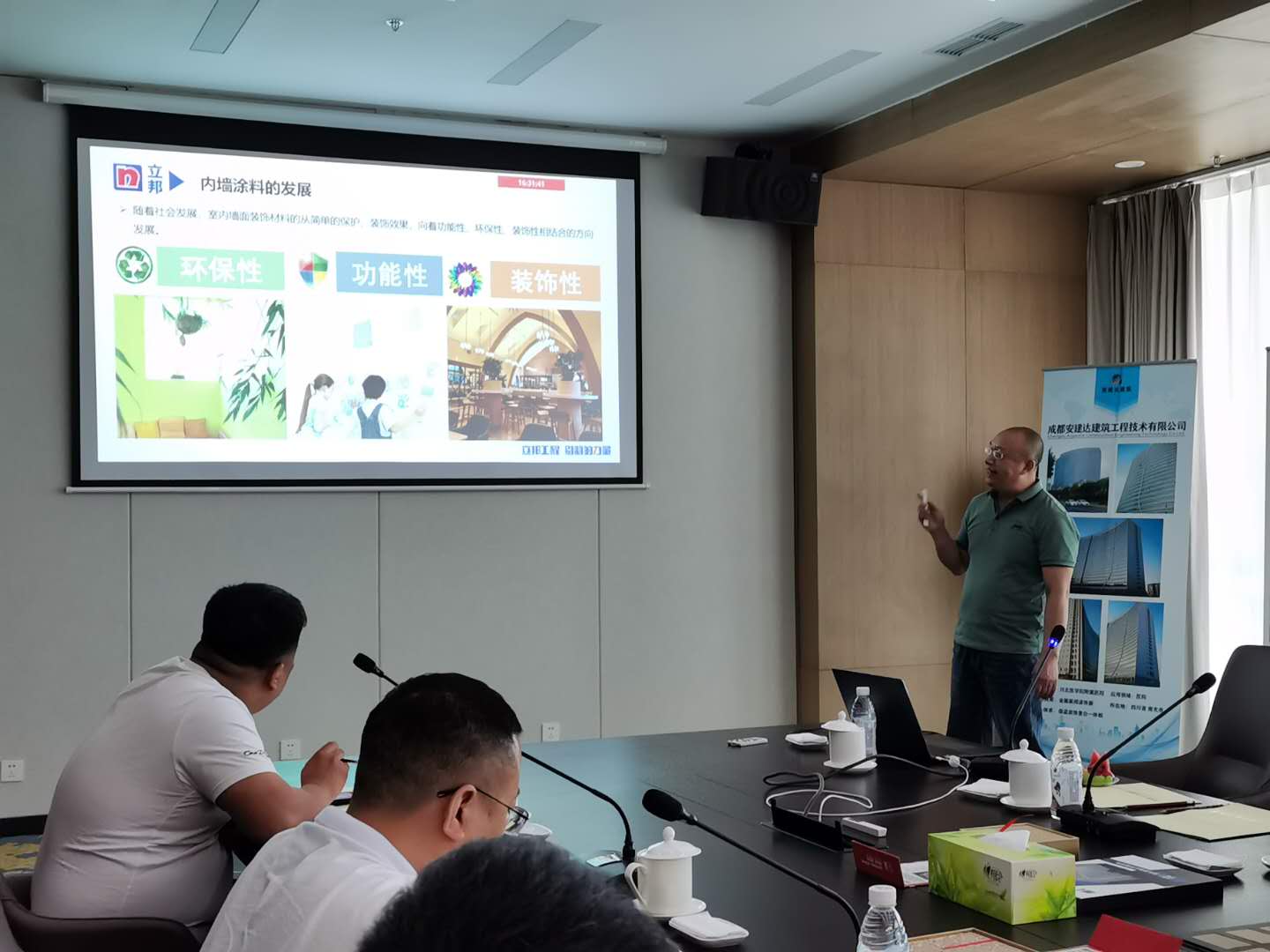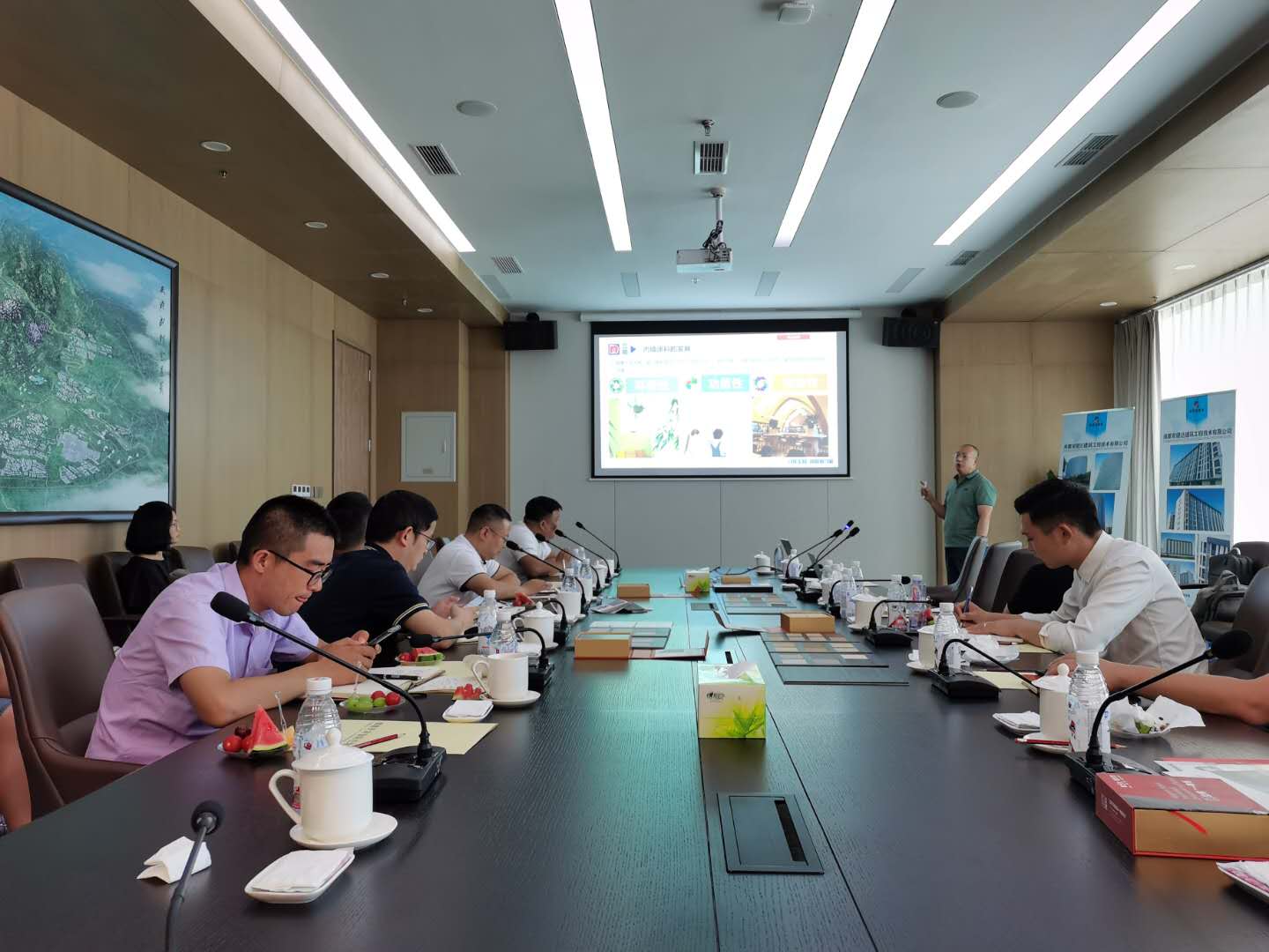 2020年6月5日下午,公司邀請西南建筑設(shè)計(jì)院、立邦涂料、生物城建設(shè)有限公司等方面領(lǐng)導(dǎo)及行業(yè)專家,共同就“科技新型墻材地材在現(xiàn)代建筑中的設(shè)計(jì)與應(yīng)用”為主題進(jìn)行了分享和深入交流。