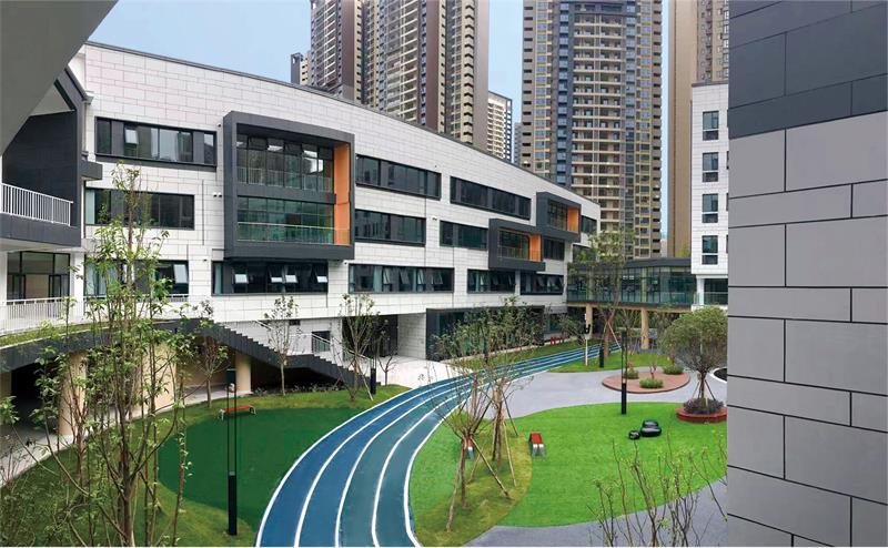 項(xiàng)目位于成都市龍泉驛區(qū),為上市企業(yè)天立教育集團(tuán)旗下在成都龍泉建立的高端私立校區(qū)。我司承建了該項(xiàng)目的外墻保溫復(fù)合一體板、外墻鋁單板幕墻,工程外立面規(guī)模約 17000m ,采用仿石飾面效果保溫裝飾一體板系統(tǒng)。 在 2021 年該項(xiàng)目被成都市教育系統(tǒng)評(píng)為”最美校區(qū)“、“成都市教育示范校區(qū)”。